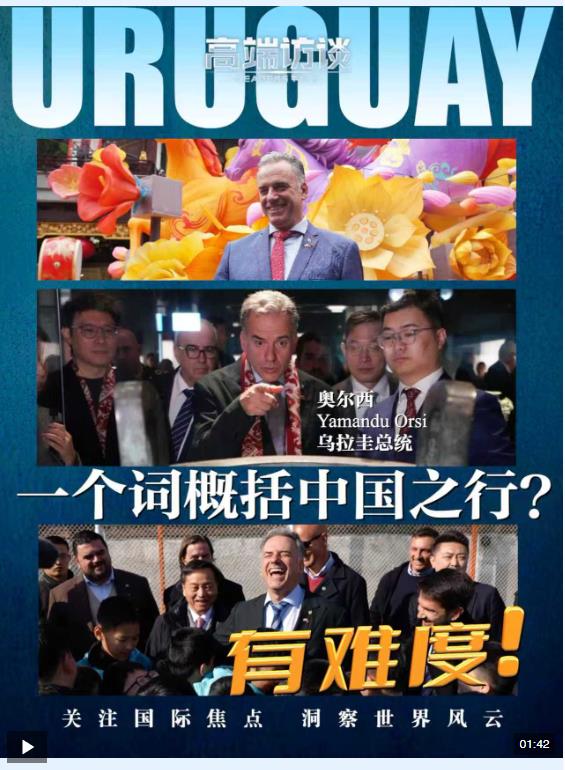 2月6日,烏拉圭總統(tǒng)奧爾西接受總臺《高端訪談》欄目專訪。在采訪中,當(dāng)被問及會用什么關(guān)鍵詞來形容這次中國之行時,奧爾西提到了“謝謝”和“現(xiàn)實”這兩個詞。