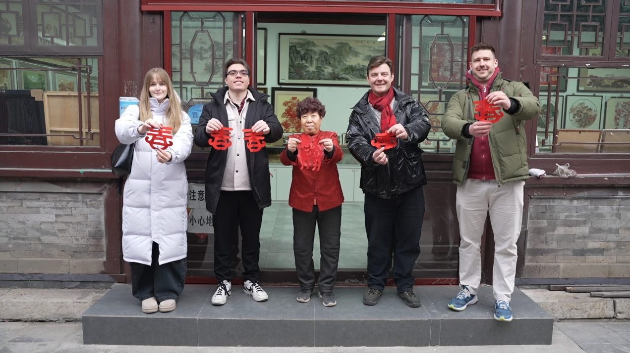 帝漢尼:我?guī)麄兏惺苤袊鴤鹘y(tǒng)文化,有剪紙,我們一起剪了一個“春”字。我還帶他們?nèi)ネ啬戤?,先刷上墨,再把紙放上面,用木板刷刷刷,他們覺得很有意思。我們印了一個馬。我們還一起包餃子,我像個老師一樣教他們包餃子。其實我包得不好看,他們包得也不好看,主要是我們包餃子這個過程特別開心。