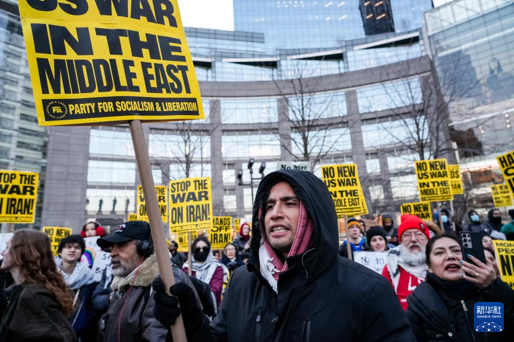 3月2日,人們在美國紐約參加集會,抗議美國對伊朗發(fā)動軍事打擊。新華社發(fā)(章正浩攝)