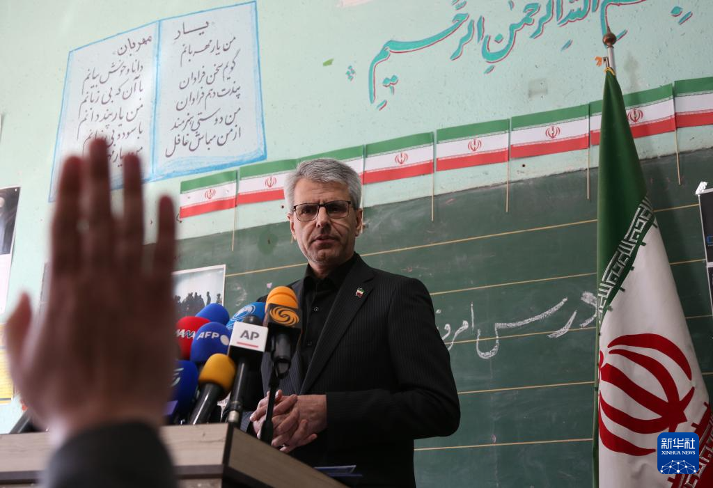 3月3日,伊朗外交部發(fā)言人巴加埃在德黑蘭的沙希德·馬哈拉提學(xué)校內(nèi)舉行新聞發(fā)布會(huì),這座學(xué)校在美以軍事打擊中遭到破壞。 新華社記者 沙達(dá)提 攝