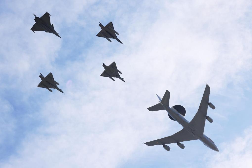 2022年7月14日,法國空軍飛機(jī)參加在法國巴黎舉行的國慶閱兵式。新華社記者高靜攝