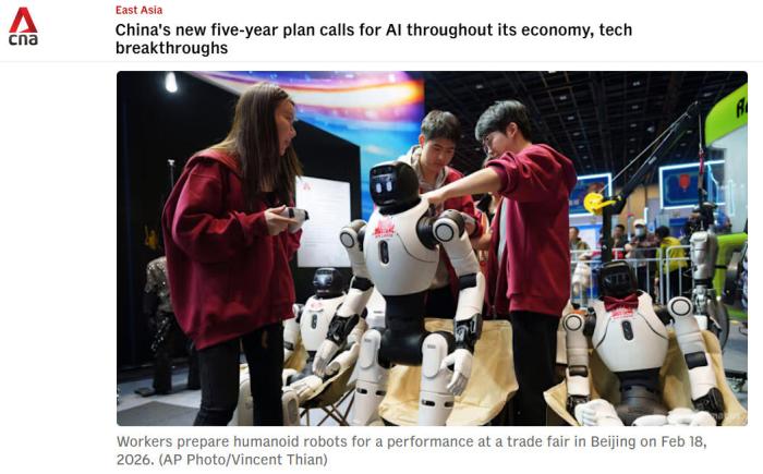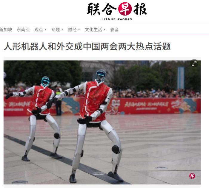 新加坡《聯(lián)合早報》報道稱,中國多家人形機(jī)器人公司在春晚舞臺上的武術(shù)表演吸引全球目光,相關(guān)產(chǎn)業(yè)獲得輿論高度關(guān)注,這股熱潮延續(xù)至2026年中國全國兩會上,不少人工智能相關(guān)的企業(yè)人士在會場外成為媒體格外關(guān)注的對象。