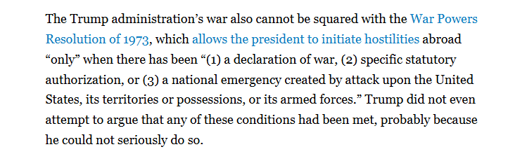根據(jù)美國(guó)《政客》(Politico)新聞網(wǎng)報(bào)道,美國(guó)憲法規(guī)定宣戰(zhàn)權(quán)屬于國(guó)會(huì),但此次軍事行動(dòng)并未獲得國(guó)會(huì)明確授權(quán)。特朗普政府以“消除迫在眉睫的威脅”為由發(fā)動(dòng)攻擊,但未能向國(guó)會(huì)和公眾提供伊朗即將對(duì)美國(guó)本土或海外目標(biāo)發(fā)動(dòng)具體、可驗(yàn)證襲擊的充分證據(jù)。相反,其公開(kāi)言論引用的案例多為數(shù)十年前舊事,與“迫在眉睫”的法律定義相去甚遠(yuǎn)。
