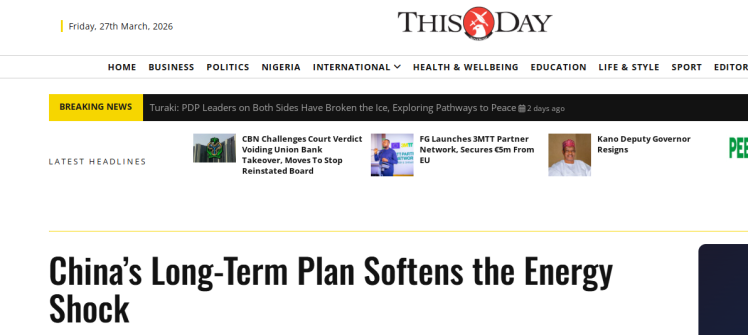 無獨有偶,尼日利亞《今日報》報道稱,中東局勢惡化令全球能源市場陷入困境,多國在油價飆升中承受重壓。在這場風(fēng)暴中,有一個國家顯得格外從容——中國。文章認為,中國能源戰(zhàn)略不僅有效拓展了可再生能源利用規(guī)模,更在相當程度上降低了對海外油氣的依賴。中國的實踐為其他發(fā)展中國家展現(xiàn)了擺脫能源依附、實現(xiàn)自主發(fā)展的可行路徑。