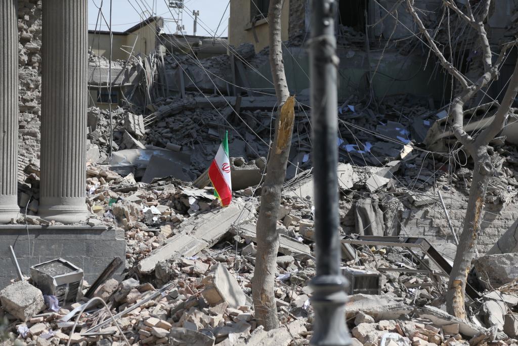 這是2026年3月4日在伊朗德黑蘭革命廣場附近拍攝的一處損毀的建筑。新華社記者沙達(dá)提攝