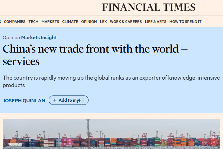 《金融時報》認為,中國外貿(mào)結(jié)構(gòu)正在出現(xiàn)新的變化。與過去更多依靠商品出口相比,技術(shù)、數(shù)字系統(tǒng)和配套服務(wù)在對外貿(mào)易中的比重正逐步上升。文章認為,隨著中國科技龍頭企業(yè)持續(xù)被看好,更多中國企業(yè)加快融入全球知識密集型貿(mào)易,有望進一步拓展增長空間。