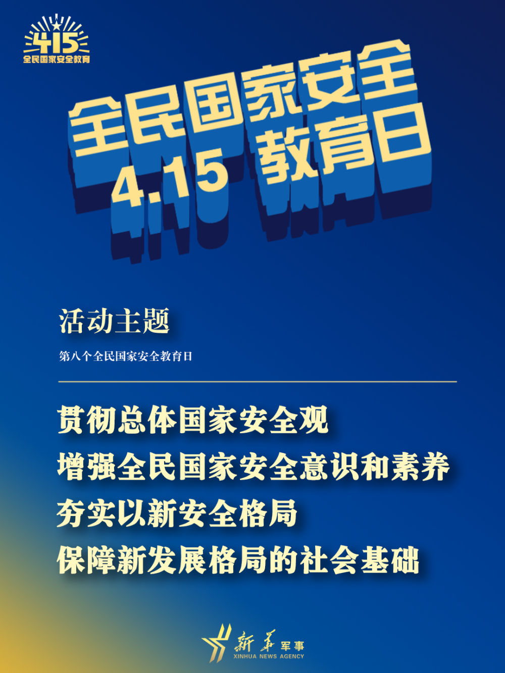 今年4月15日是第八個全民國家安全教育日。今年全民國家安全教育日的活動主題為“貫徹總體國家安全觀,增強全民國家安全意識和素養(yǎng),夯實以新安全格局保障新發(fā)展格局的社會基礎(chǔ)”。