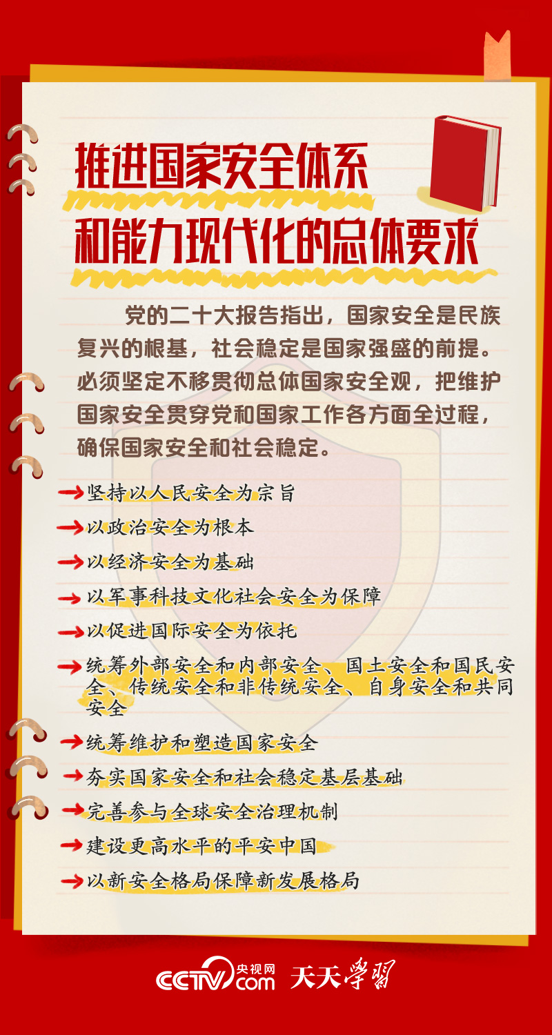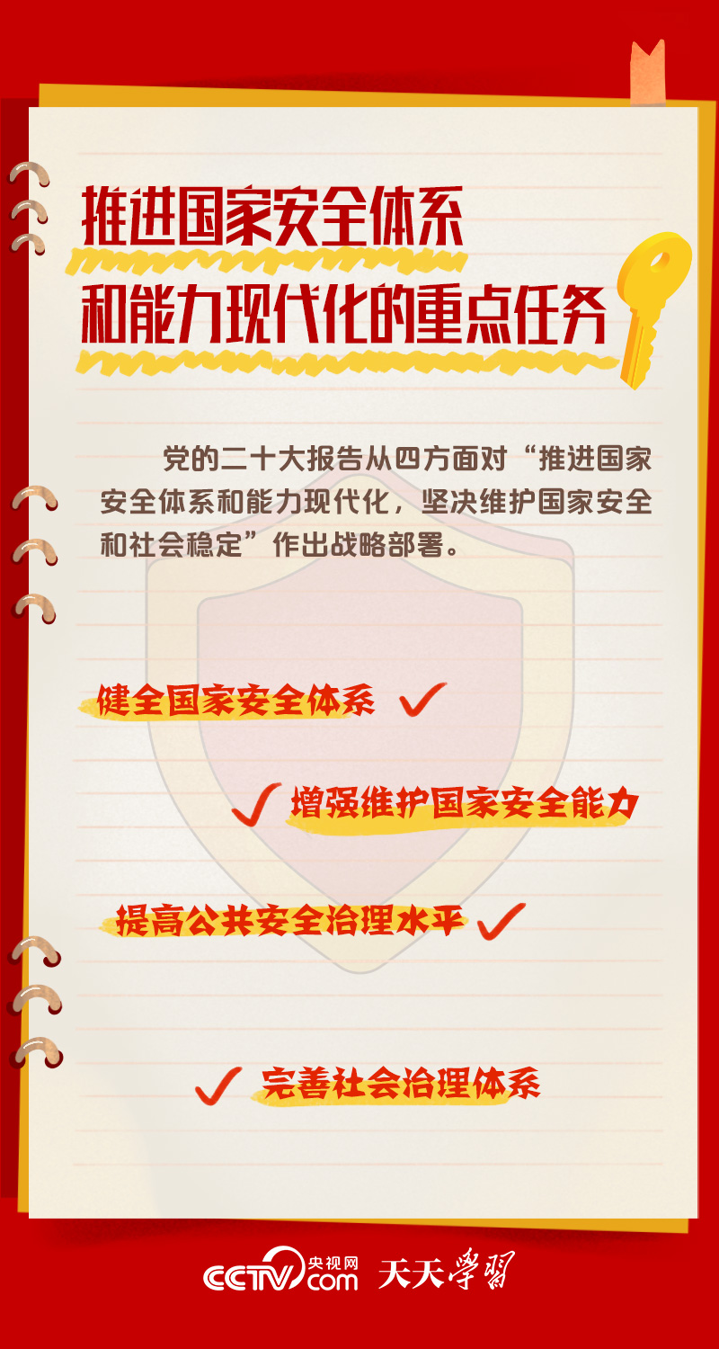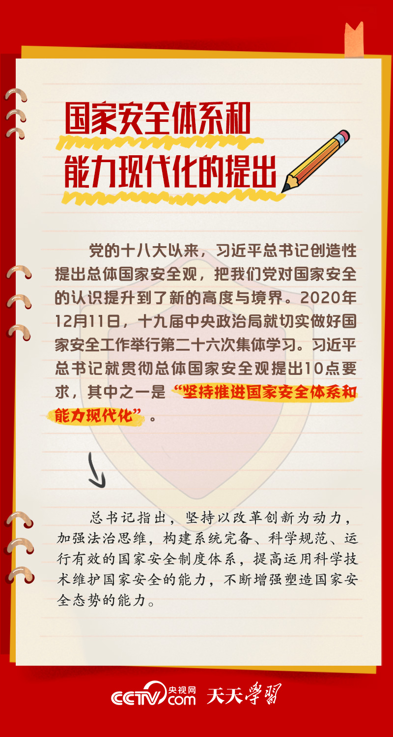 總書(shū)記多次強(qiáng)調(diào)要推進(jìn)國(guó)家安全體系和能力現(xiàn)代化。央視網(wǎng)《天天學(xué)習(xí)》梳理相關(guān)內(nèi)容,帶您了解總書(shū)記治國(guó)理政關(guān)鍵詞——國(guó)家安全體系和能力現(xiàn)代化。