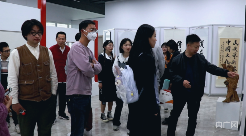 天津美術(shù)學(xué)院學(xué)生參觀非遺作品(央廣網(wǎng)記者 周思楊 攝)