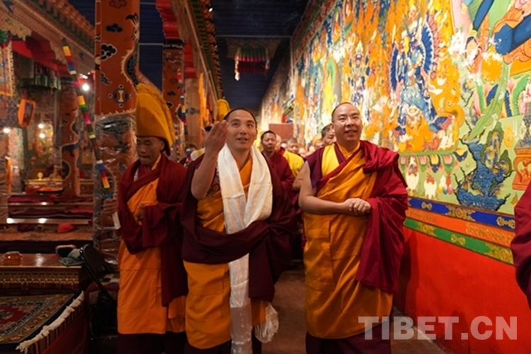 在瓊布·阿旺強巴堅贊活佛引領(lǐng)下,班禪依次朝拜主殿懺悔殿、主供佛殿、度母殿、護法神殿、舊杜康殿,參觀文物陳列室,前往寺廟辯經(jīng)場觀摩僧人辯經(jīng),并就扎西吉培寺“三個意識”教育開展情況和僧人綜合考評機制有關(guān)情況進行調(diào)研。