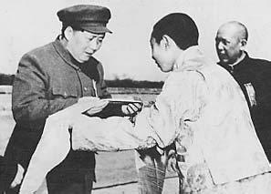 圖為十世班禪向毛澤東主席敬獻哈達 (喜饒尼瑪提供)