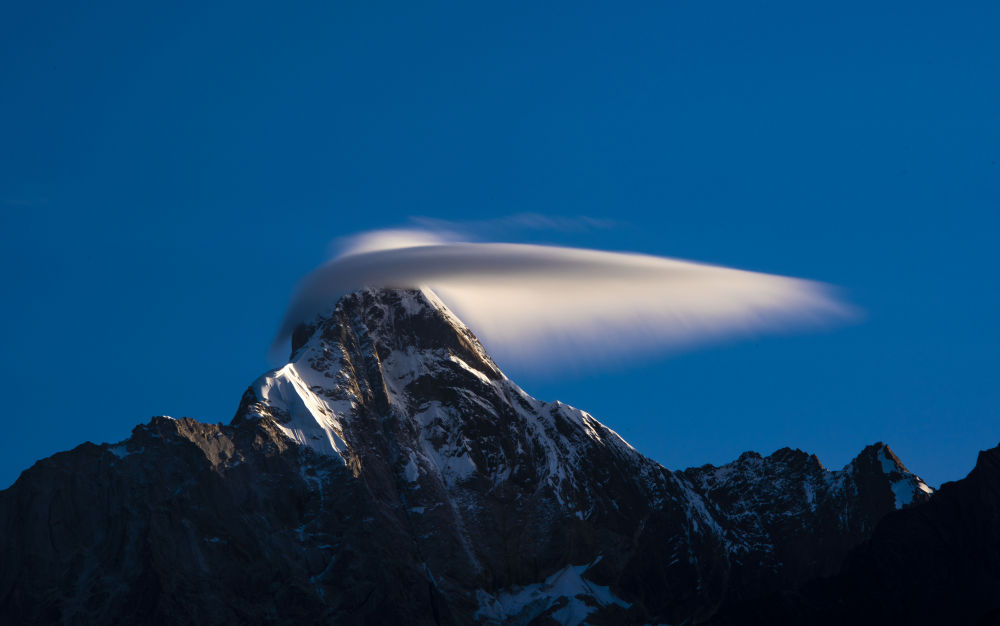 四姑娘山幺妹峰旗云。新華社發(fā)(曾凡榮 攝)