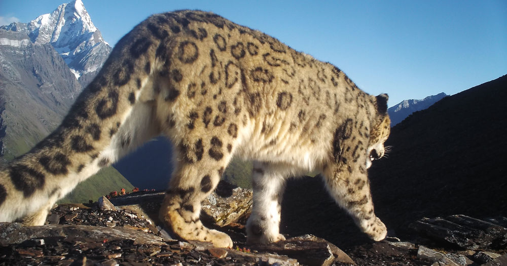 雪豹與幺妹峰同框。新華社發(fā)(四姑娘山管理局供圖)