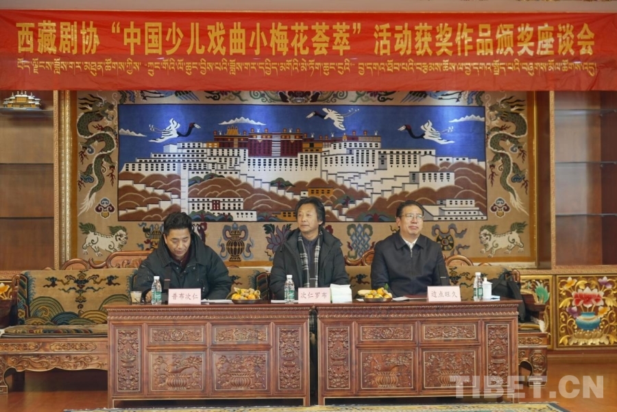 中國(guó)西藏網(wǎng)訊 1月14日,西藏戲劇家協(xié)會(huì)在拉薩舉行“中國(guó)少兒戲曲小梅花薈萃”活動(dòng)獲獎(jiǎng)作品頒獎(jiǎng)座談會(huì),為第29屆“中國(guó)少兒戲曲小梅花薈萃”活動(dòng)中榮獲“小梅花”稱號(hào)的單增班旦、羅珍兩位少兒頒獎(jiǎng)。