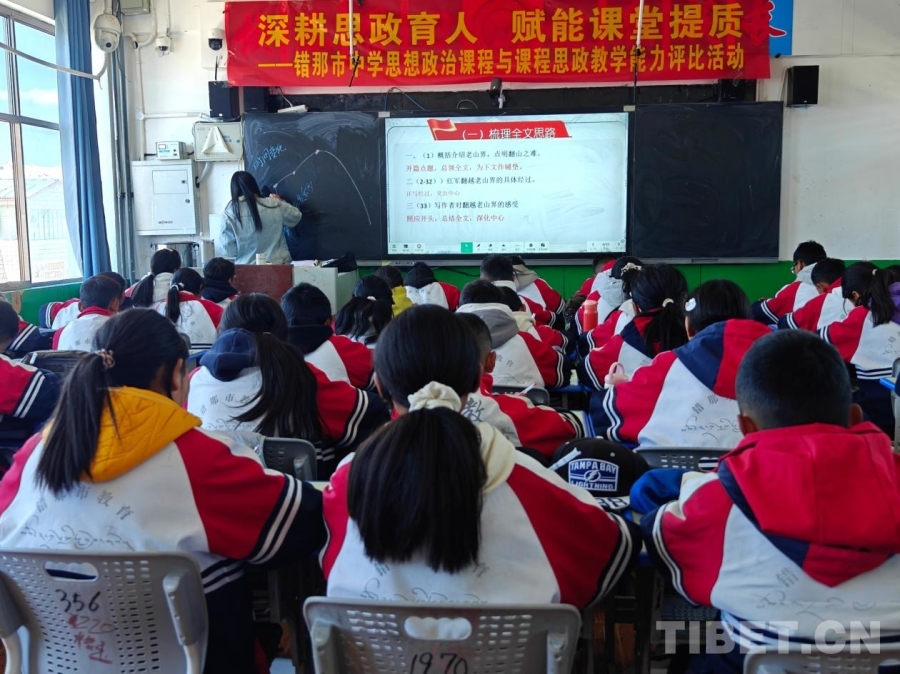 錯那市中學初一三班的學生在上課