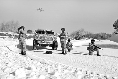 陸軍某旅三角山邊防連執(zhí)勤組外出巡邏時使用無人機偵察。新華社發(fā)