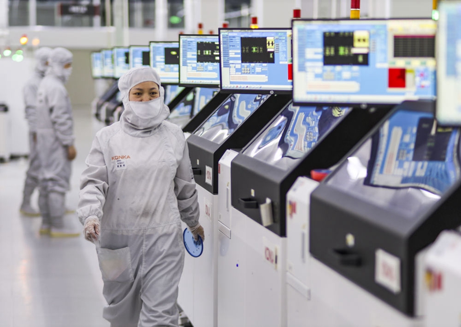 2024年3月14日,在位于重慶市璧山區(qū)的重慶康佳光電科技有限公司,工作人員在商顯MLED生產線上作業(yè)。新華社發(fā)(曾清龍 攝)