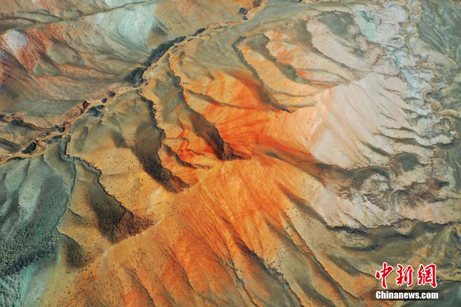 進(jìn)入四月,新疆昌吉回族自治州百里丹霞多姿多彩,S101公路蜿蜒于群山峻嶺,沿途景色美不勝收,藍(lán)天、白云、雪山和丹霞共同組成了一幅水彩畫(huà)。駱駝峰、回音谷等景點(diǎn),栩栩如生、絢爛壯麗。圖為俯瞰新疆昌吉百里丹霞,如水彩畫(huà),令人向往,如癡如醉。
