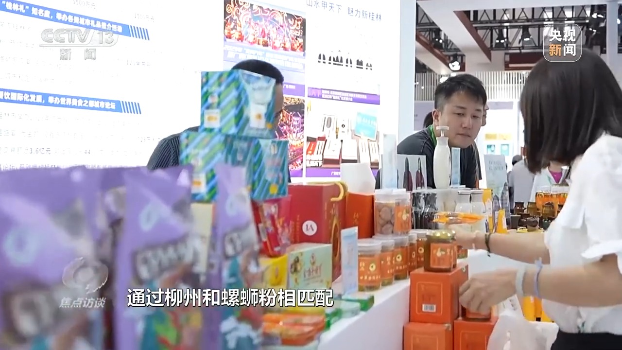 廣西壯族自治區(qū)商務(wù)廳工作人員 李春穎:往年我們都是桂茶、桂酒、桂藝,我們這一次想增加城市烙印,就選擇了六個區(qū)域消費(fèi)培育試點(diǎn)城市,讓城市跟物品相掛鉤。我們通過柳州和螺螄粉相匹配,桂林和桂林有名的文創(chuàng)相匹配。展會可能是一個星期、一個時間段,通過展會引導(dǎo)消費(fèi)者來到我們的城市,感受消費(fèi),全年消費(fèi)。