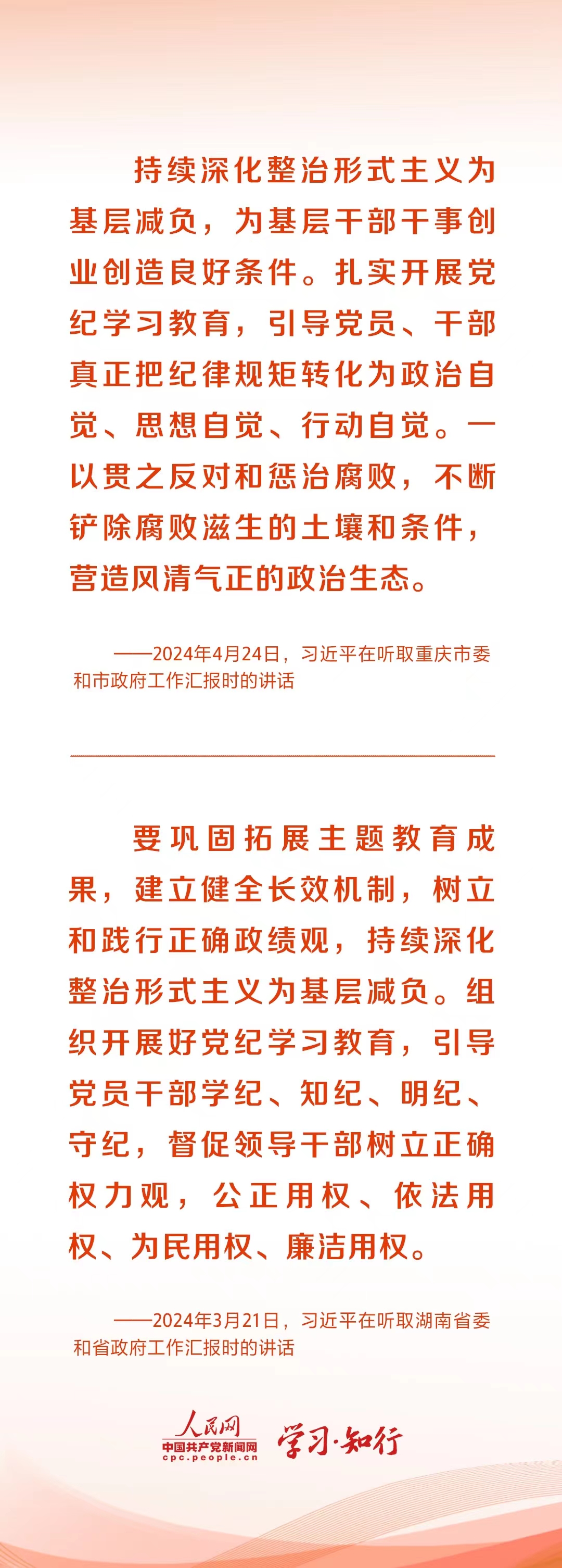 在新時代推動西部大開發(fā)座談會上,習近平再次明確,“鞏固拓展主題教育成果,抓好黨紀學習教育,持續(xù)整治形式主義為基層減負?!?/p>