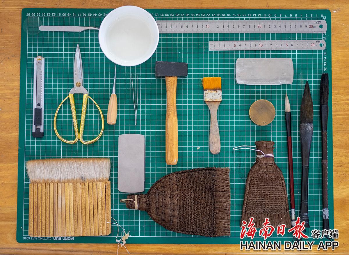 古籍修復(fù)師黃文鋒的部分工具。海南日報(bào)記者袁琛 攝
