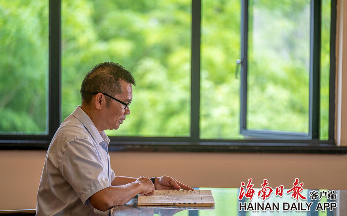 古籍修復(fù)師黃文鋒在閱讀古籍。海南日報(bào)記者袁琛 攝