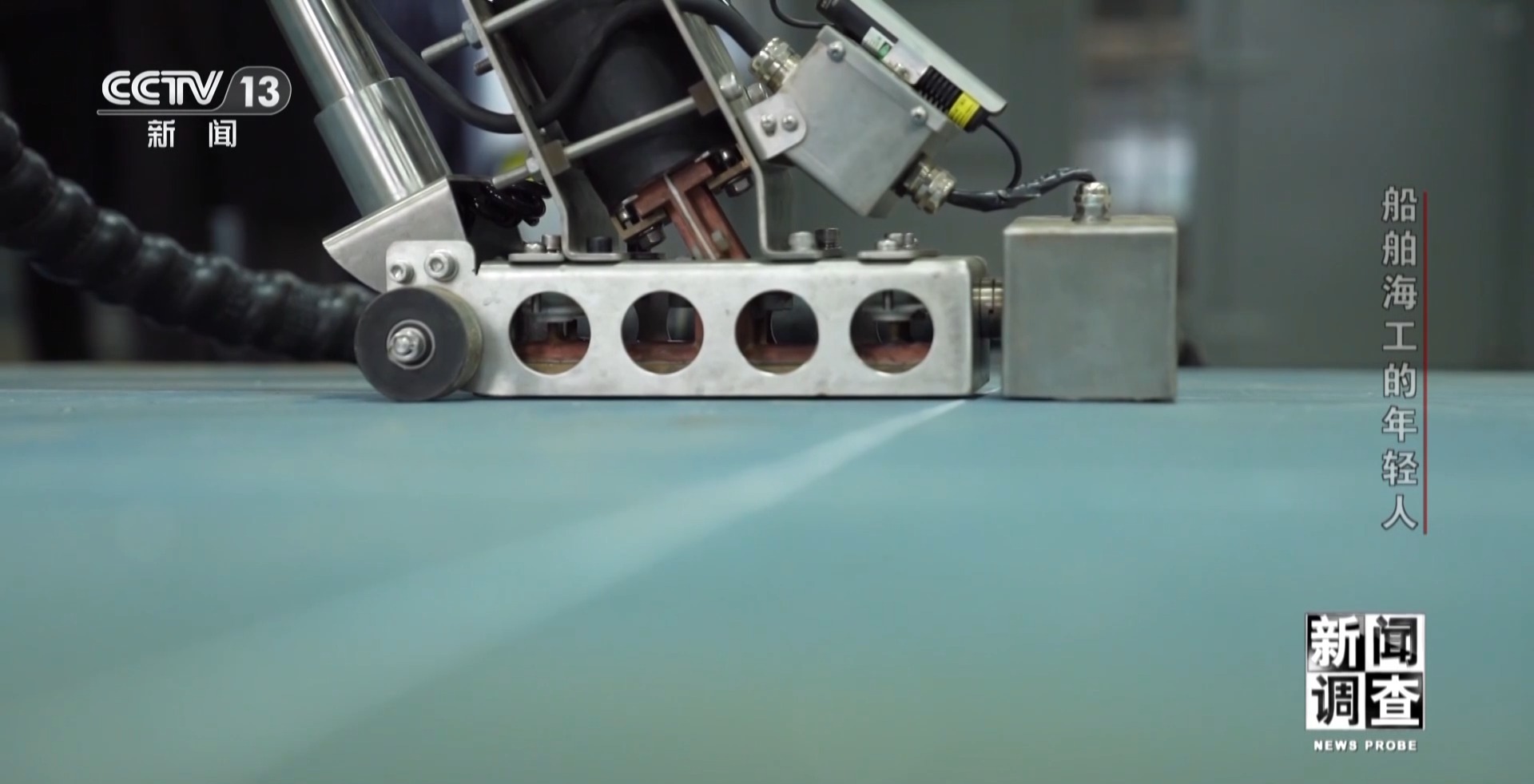 江蘇大洋海洋裝備有限公司技能大師工作室主任 孫玉龍:這個板子比較特殊,它是EH690鋼,硬度比較高,板厚也比較厚。想把它焊合格是很難的,兩個人要焊一天。焊不好它會產(chǎn)生內(nèi)部缺陷,比如說氣孔、裂紋等一系列的缺陷在里面。
