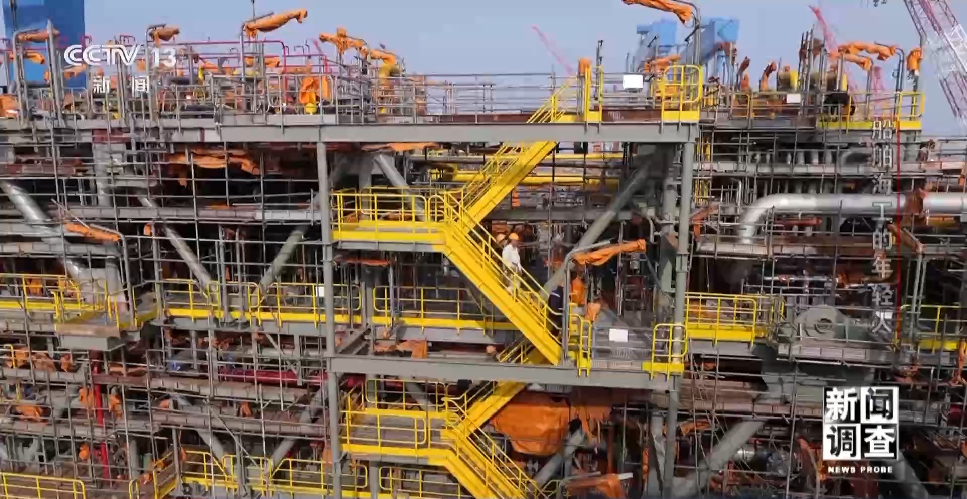 啟東中遠海運海洋工程有限公司高級工程師 孫博文:這個模塊是液化石油氣的壓縮和蒸汽回收壓縮的一個模塊,這一個模塊就相當于陸地上的一個壓縮車間。