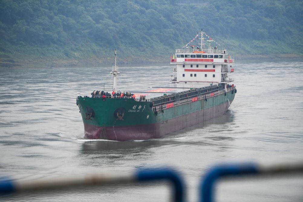 “創(chuàng)新5”輪船長(zhǎng)吳加福說(shuō),萬(wàn)噸級(jí)“創(chuàng)新5”輪既符合近海行駛標(biāo)準(zhǔn),也符合三峽大壩過(guò)閘通航要求,并且是一艘LNG雙燃料動(dòng)力船舶,節(jié)省了燃料成本,更加綠色低碳。