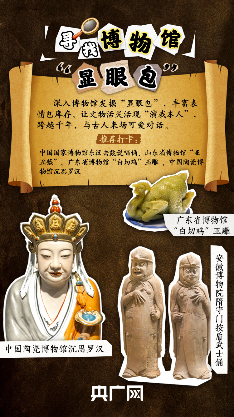 除國博外,各地博物館都有不少“出圈”的網(wǎng)紅“顯眼包”,安徽博物院“摸著良心說話”的守門按盾武士陶俑,廣東省博物館連顏色、毛孔都十分逼真的白切雞玉雕,山東博物館在古代象征王權(quán)、但今天看起來“萌萌的”亞丑鉞……都受到大眾喜愛。看似搞笑的文物表情包背后,其實(shí)是青年人對博物館的關(guān)注,對無盡歷史的探究之心。