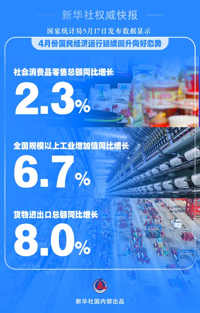 國家統(tǒng)計局17日發(fā)布的數(shù)據(jù)顯示,今年4月份,生產(chǎn)需求平穩(wěn)增長,就業(yè)物價總體向好,社會預(yù)期持續(xù)改善,高質(zhì)量發(fā)展扎實推進,國民經(jīng)濟運行總體穩(wěn)定,延續(xù)回升向好態(tài)勢。