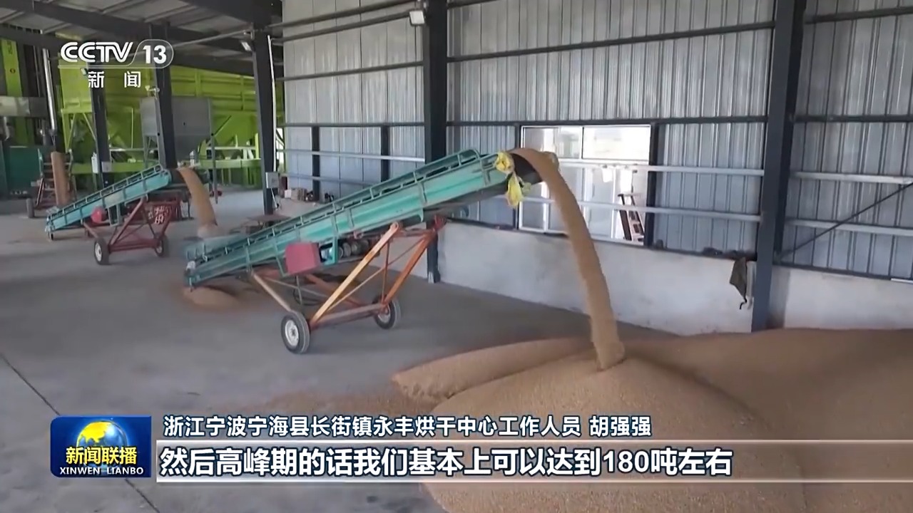 浙江寧波寧??h長(zhǎng)街鎮(zhèn)永豐烘干中心工作人員 胡強(qiáng)強(qiáng):一天我們目前烘干量在100來(lái)噸,高峰期我們基本上可以達(dá)到180噸左右。