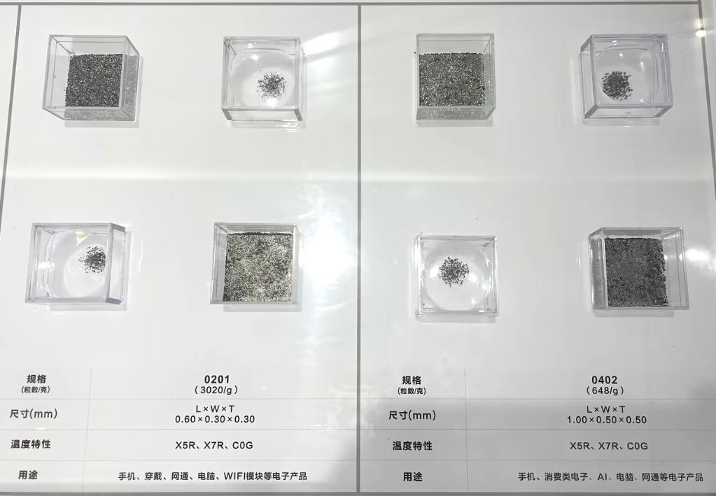 風(fēng)華高科生產(chǎn)的部分電容產(chǎn)品,用于手機(jī)、消費(fèi)類(lèi)電子、AI等電子產(chǎn)品。受訪(fǎng)企業(yè)供圖