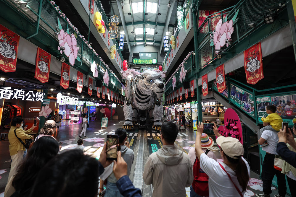 大連熊洞街,當(dāng)身高6米、重達(dá)25噸,灰色的仿生機(jī)械巨熊時而張口咆哮,時而緩緩前行,游客爆發(fā)出陣陣歡呼。大連冰山慧谷發(fā)展有限公司總經(jīng)理助理藍(lán)費靜說:“這一街區(qū)由擁有近百年歷史的大連冰山集團(tuán)舊址改造而來,現(xiàn)已匯聚上百家游樂、電玩、研學(xué)商戶,老廠房煥發(fā)了新生機(jī)?!?/p>