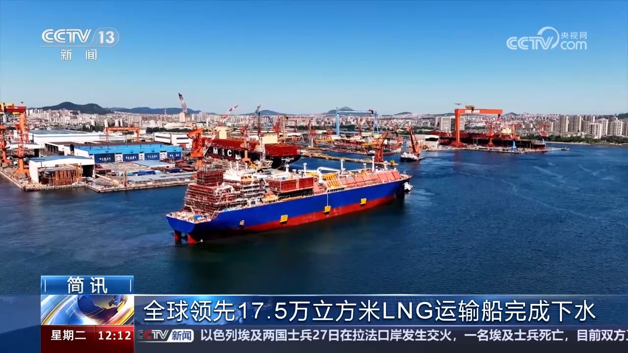 5月27日,由中國船舶大連造船研發(fā)建造的LNG液化天然氣運輸船完成下水,運輸船總長295米,貨艙總艙容17.5萬立方米,可以??咳蚪^大多數(shù)大型LNG岸站。接下來,運輸船將陸續(xù)完成水下系泊調(diào)試、貨艙貨物圍護(hù)系統(tǒng)施工,預(yù)計2025年8月中旬交付。