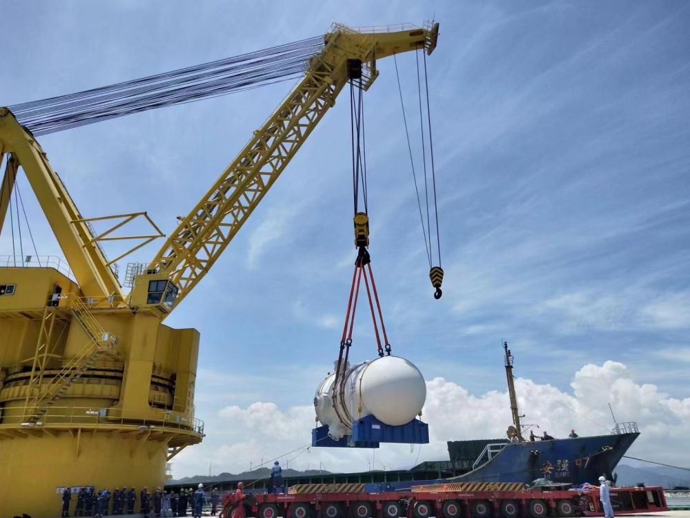 2022年8月9日,我國自主三代核電“華龍一號”批量化工程——中核集團(tuán)漳州核電2號機(jī)組反應(yīng)堆壓力容器在進(jìn)行吊裝(資料照片)。