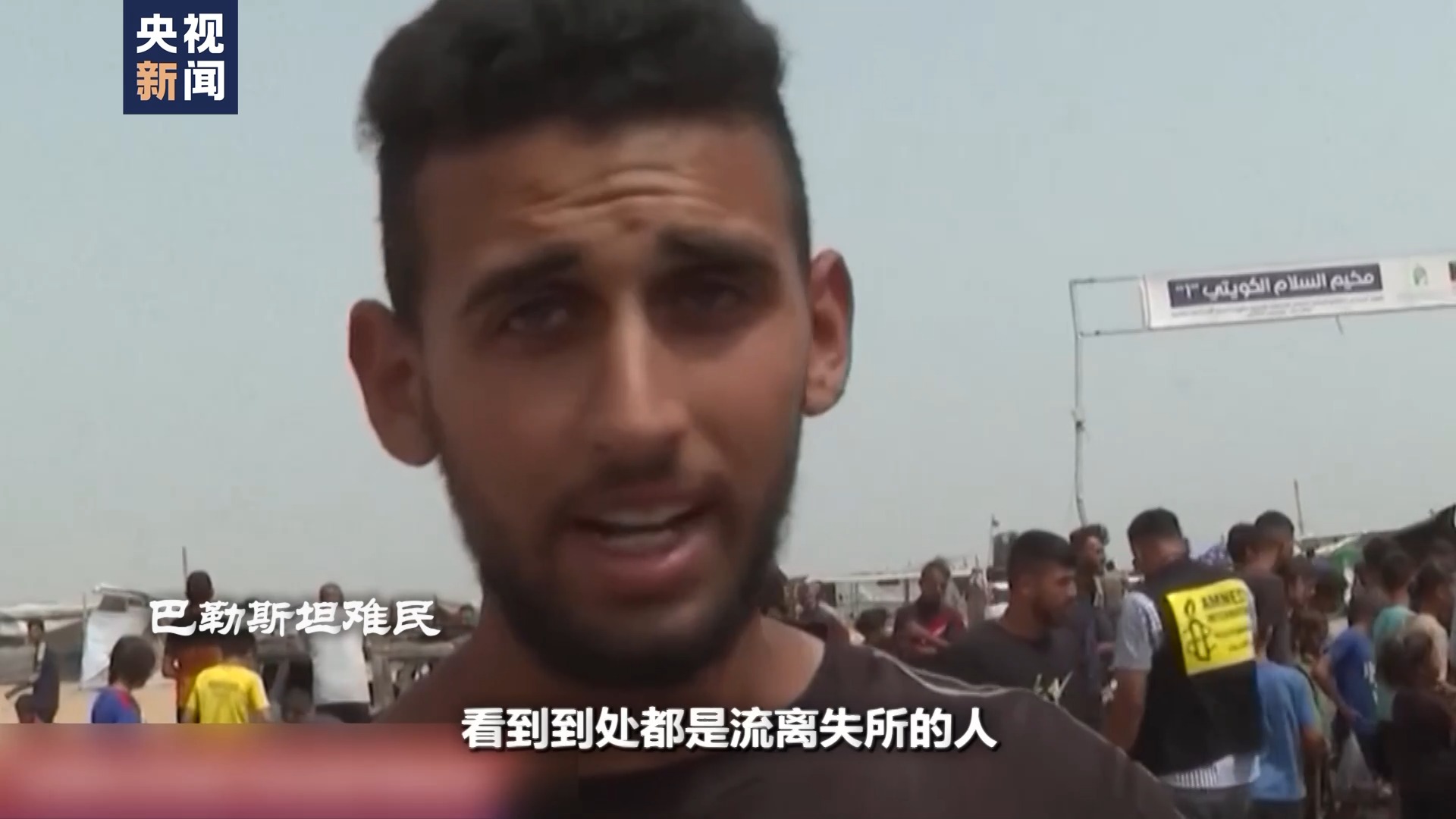 巴勒斯坦難民:我們在附近聽到了轟炸聲,就跑到這個營地來。看到到處都是流離失所的人,有兒童、婦女、青年和老人。眾所周知,這個營地是為難民而建的,而他們幾乎都是從(加沙)北部逃到這里的。