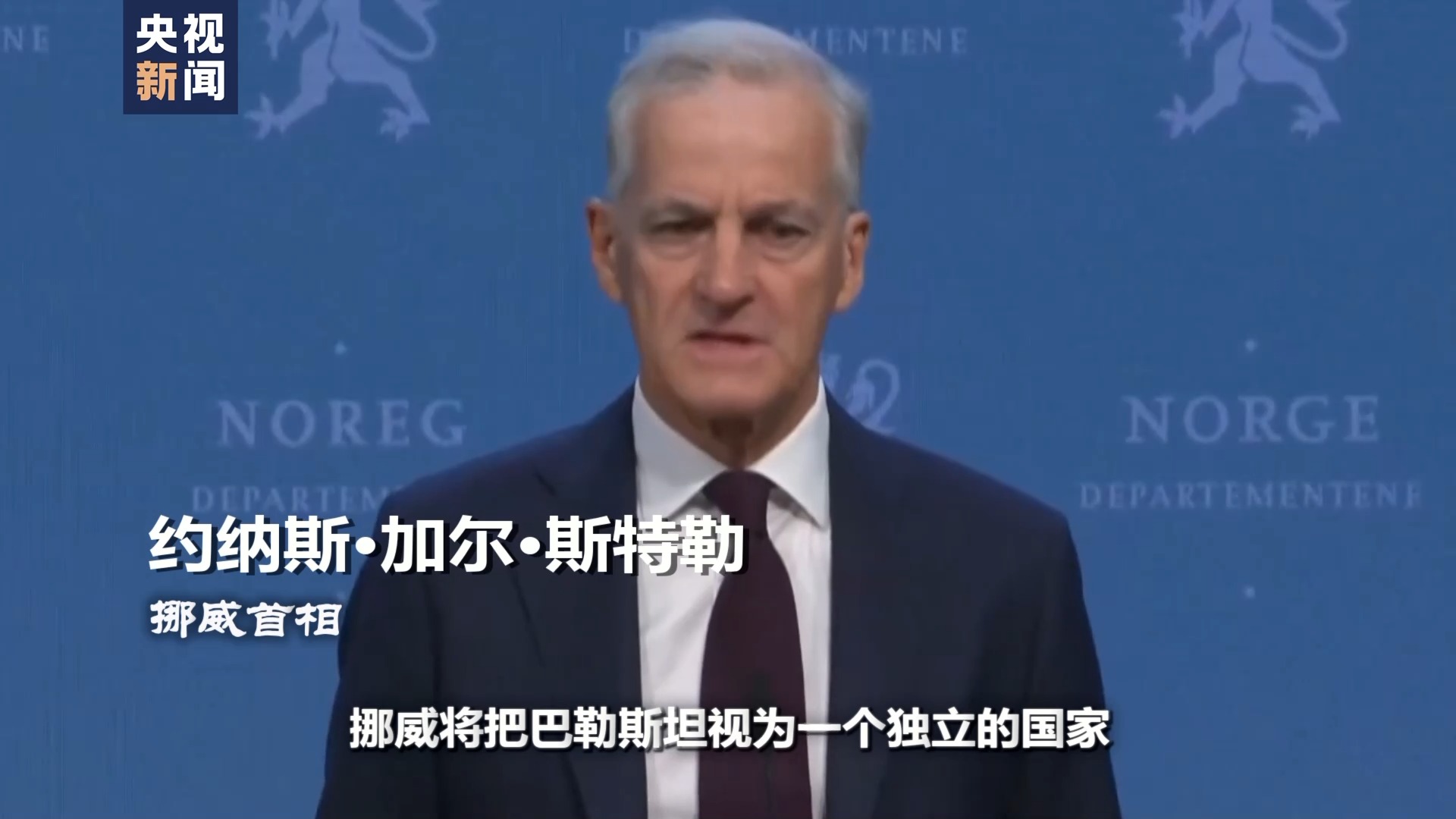 挪威首相 約納斯·加爾·斯特勒:挪威將把巴勒斯坦視為一個獨立的國家,享有因此賦予的所有權利和義務。