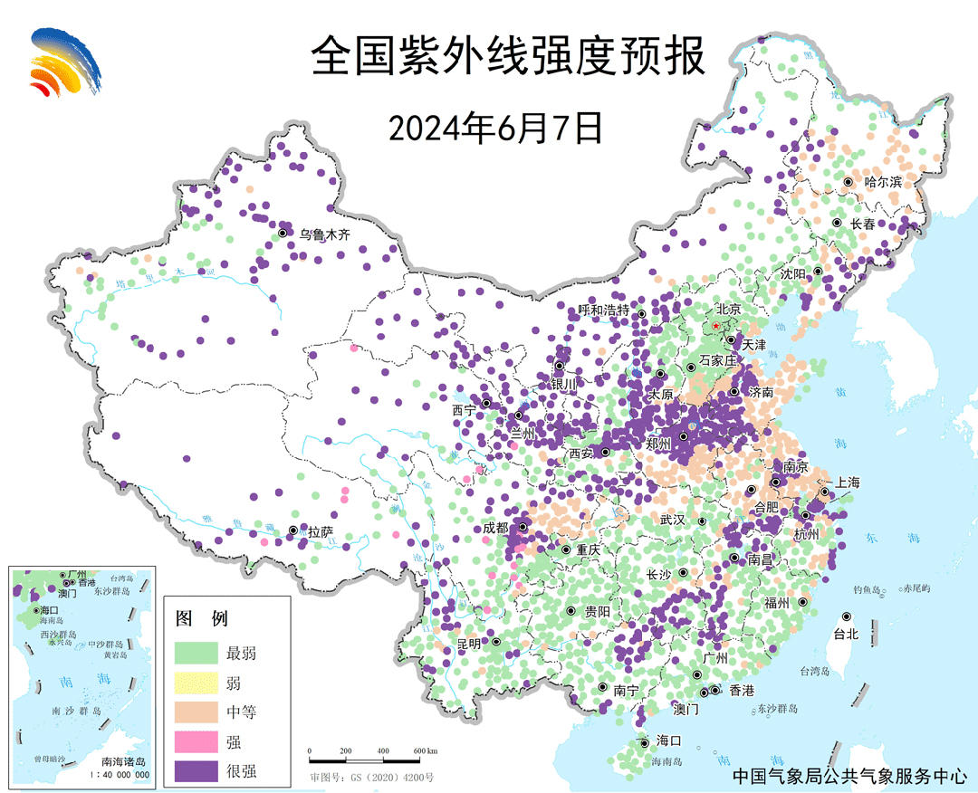 據(jù)全國(guó)紫外線強(qiáng)度預(yù)報(bào)顯示,高考期間,華北、東北地區(qū)南部、華東地區(qū)中部和北部、華中地區(qū)中部和北部、西南地區(qū)東部、西北地區(qū)的部分地區(qū)及內(nèi)蒙古、新疆、西藏大部等地紫外線強(qiáng)度很強(qiáng)。北方大部地區(qū)紫外線較強(qiáng),戶外陪考家長(zhǎng)及考務(wù)工作者需注意防曬。