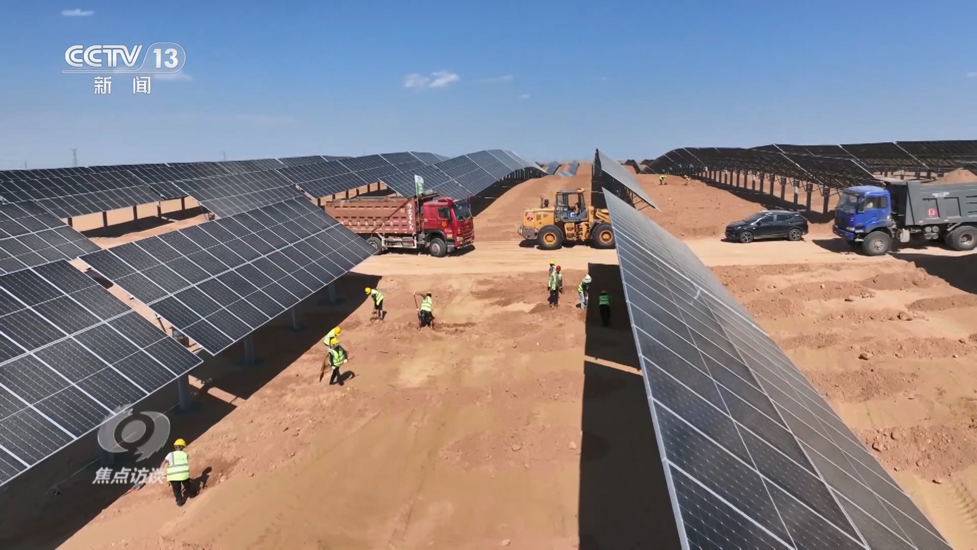 在內(nèi)蒙古庫(kù)布其沙漠北緣,一排排深藍(lán)色的太陽(yáng)能電池板格外醒目??偼顿Y115億元、占地48.7萬(wàn)畝、光伏裝機(jī)容量13GW的新能源基地正在加緊建設(shè)。這個(gè)新能源項(xiàng)目是鄂爾多斯市防沙治沙的重點(diǎn)工程。沙漠、沙地地廣人稀,蘊(yùn)藏著巨大的風(fēng)能、太陽(yáng)能資源。內(nèi)蒙古自治區(qū)“跳出治沙看治沙”,實(shí)施防沙治沙和風(fēng)電光伏一體化工程,統(tǒng)籌推進(jìn)增綠、增能、增收,力求取得1+1>2的效果。