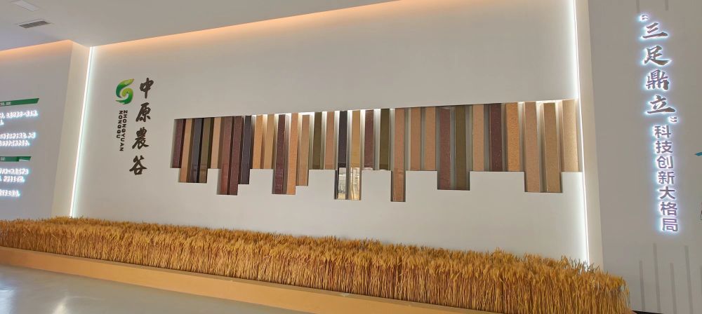 小麥、水稻、花生等10余個品類的種子,在墻面上30根亞克力管柱承裝著,形似風(fēng)吹麥浪,迎接著豐收的季節(jié)。在位于河南省新鄉(xiāng)市的中原農(nóng)谷展廳,來自河南省內(nèi)各個縣區(qū)的重要口糧在這里錯落有致地展示著,像一座“糧食長城”一樣,守護著中原大地的“飯碗”。