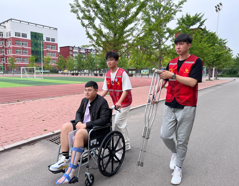 “我腳受傷了,行走不方便,你們能推我進(jìn)考場(chǎng)嗎?”“沒(méi)問(wèn)題!我們會(huì)全程陪你進(jìn)出考場(chǎng)?!鄙蜿?yáng)市第五十三中學(xué)考點(diǎn)門(mén)口,當(dāng)看到一位考生坐著輪椅行動(dòng)不便時(shí),志愿者們迅速承擔(dān)起了接送任務(wù)。