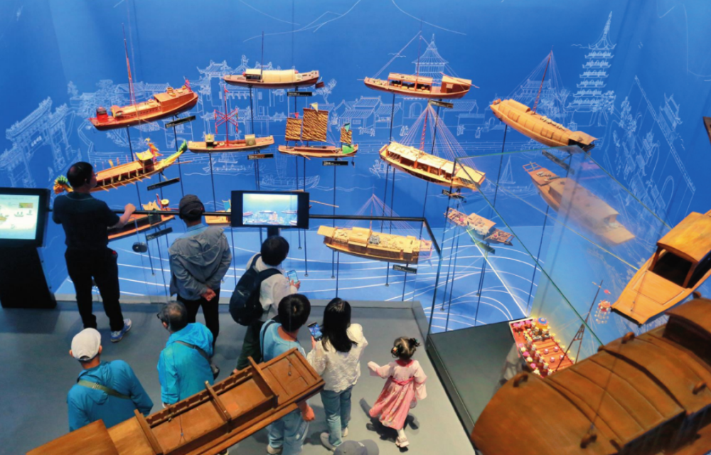 觀眾在江蘇揚(yáng)州中國(guó)大運(yùn)河博物館參觀(2024年5月18日攝)。孟德龍攝