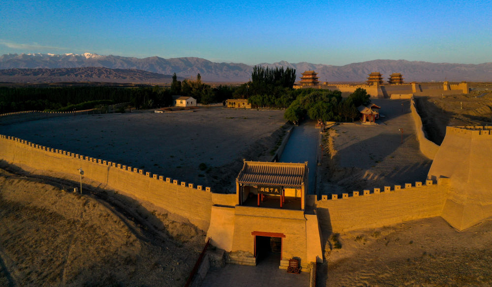 位于甘肅省嘉峪關(guān)市的嘉峪關(guān)關(guān)城(2023年7月14日攝,無人機(jī)照片)。新華社記者 方欣 攝