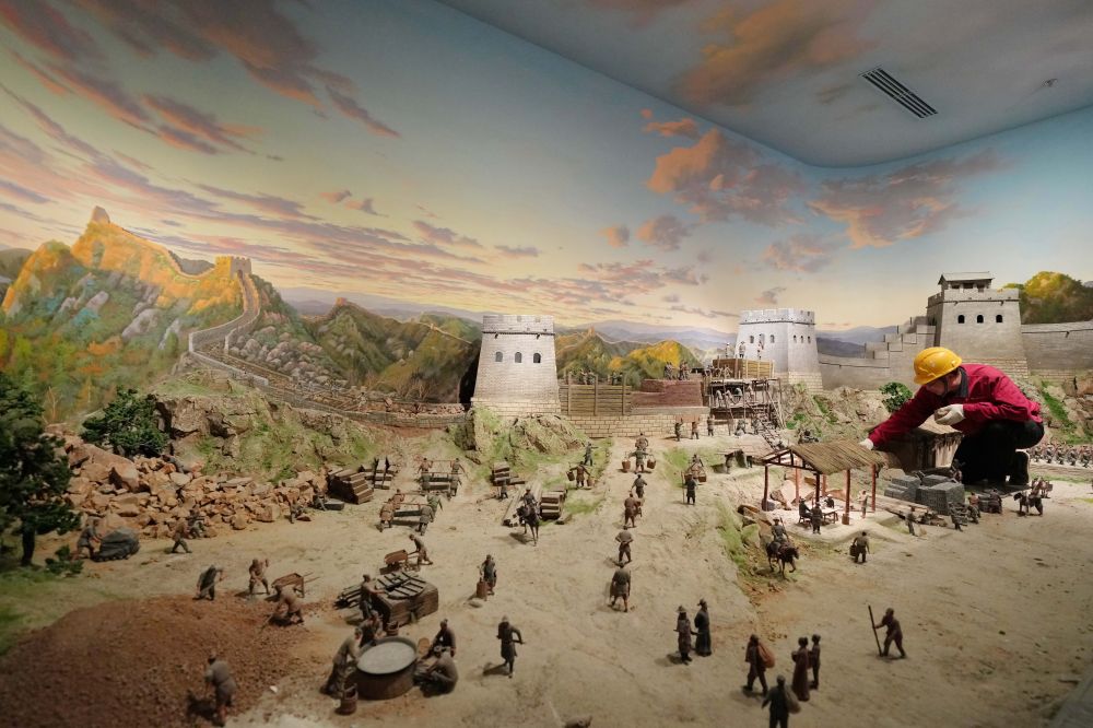 工人在山海關(guān)中國長城博物館展廳布展(2024年4月11日攝)。新華社記者 楊世堯 攝