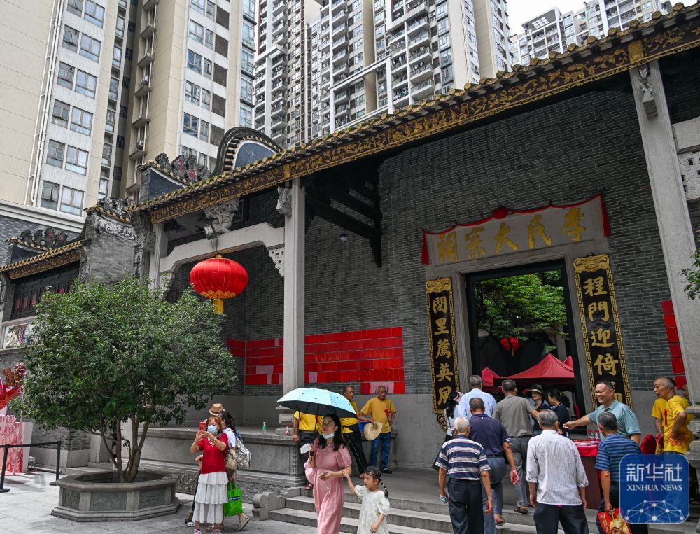 獵德村是位于廣州珠江新城CBD中心的一座歷史悠久的古村。每年端午期間,獵德村民都會遵照嶺南龍舟文化習(xí)俗,在祠堂和河涌,用各種充滿儀式感的“龍船景”展示對端午文化的傳承。