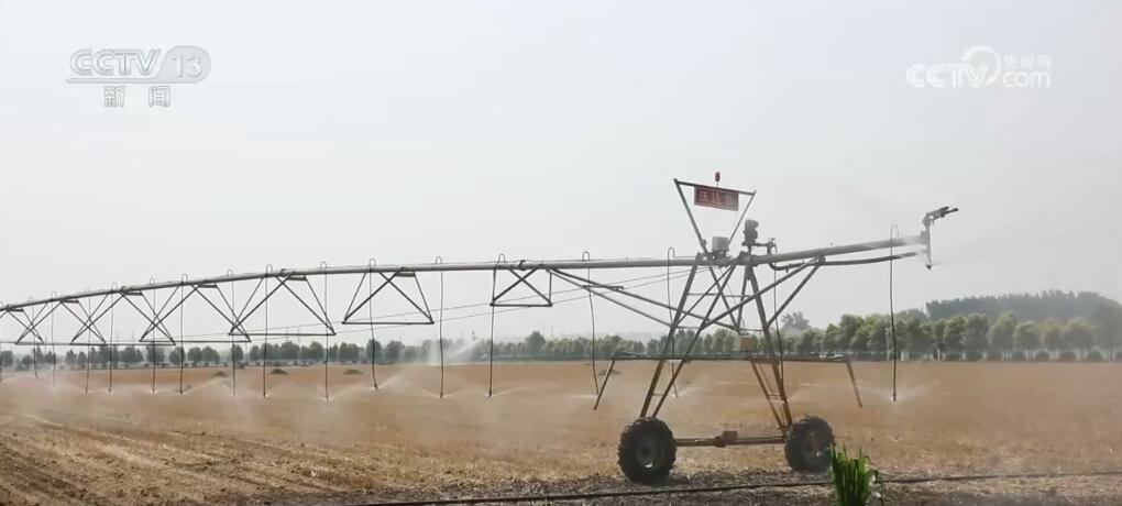 這是位于鄲城縣周口國家農(nóng)業(yè)高新技術(shù)產(chǎn)業(yè)示范區(qū)的一處農(nóng)田,多臺機(jī)械在進(jìn)行噴灌作業(yè)。農(nóng)技人員現(xiàn)場指導(dǎo)農(nóng)戶根據(jù)土壤墑情等科學(xué)灌溉,提高芽苗存活率。
