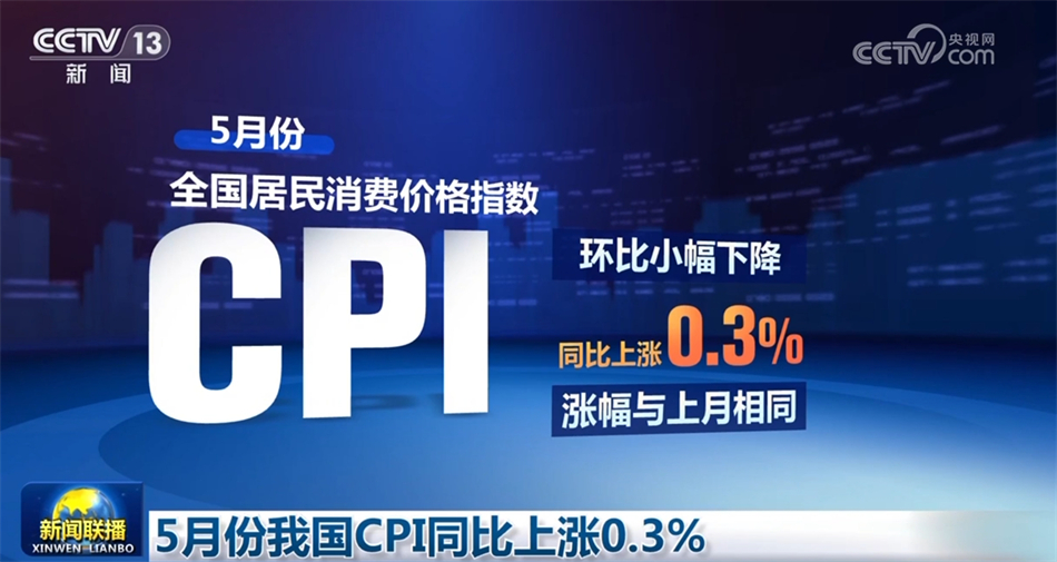 5月份我國(guó)CPI同比上漲0.3%