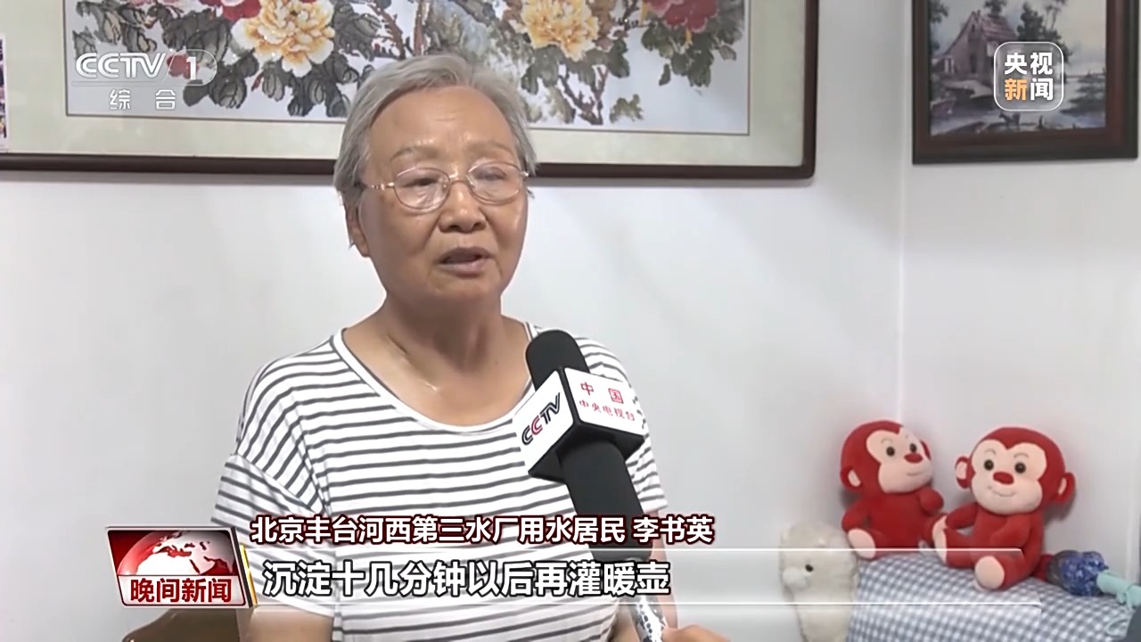 北京豐臺(tái)河西第三水廠用水居民 李書英:我們?cè)瓉碛盟畨責(zé)_水以后,還得沉淀,沉淀十幾分鐘以后再灌暖壺,但是暖壺里水堿也特別多。現(xiàn)在通過南水北調(diào)水質(zhì)比之前好多了,水堿比原來大大減少。
