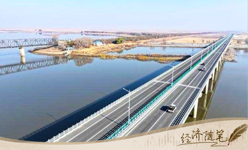 橋這邊,是吉林白城的大安市。橋那邊,是黑龍江大慶的肇源縣。多少年來,兩岸居民同飲嫩江水、同吃嫩江魚,見個(gè)面卻不太容易,夏天坐輪渡,冬天走冰面。如今,一座橋連接了彼此,周邊區(qū)域的交通被盤活,合作被激發(fā),政策與機(jī)制對(duì)接提速。當(dāng)南方游客涌入哈爾濱,不少哈爾濱人正開車奔大安,去江邊吃魚。